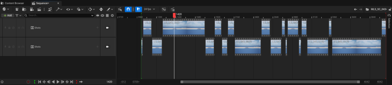Opening up the Master Level Sequence you can see the shots are interlaced and spread across two shot tracks, this enables the user to easily extend a shot from within the Master Level Sequence view if they wish.